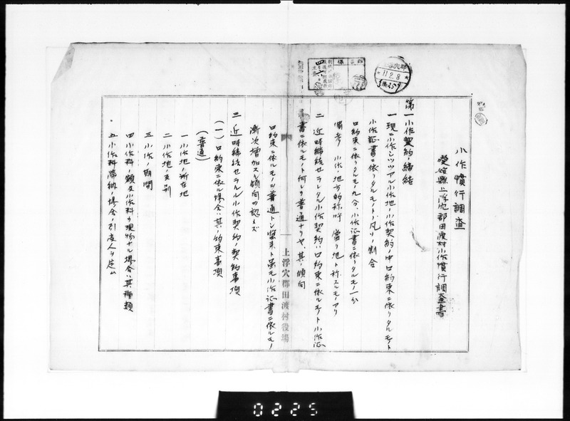 農商務省「大正10年小作慣行調査」デジタル化資料