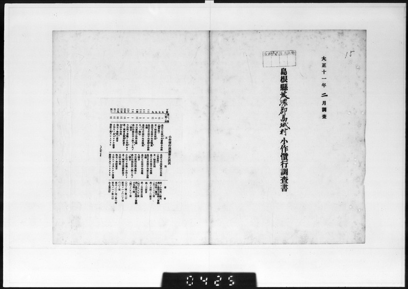 農商務省「大正10年小作慣行調査」デジタル化資料